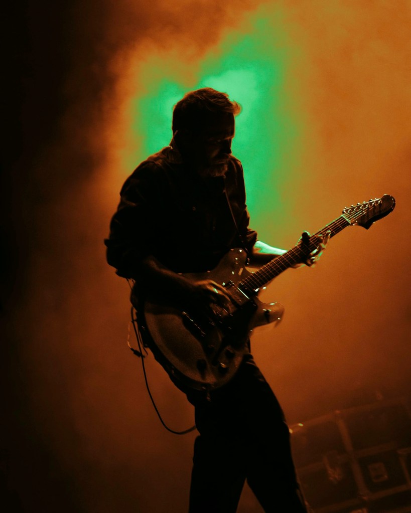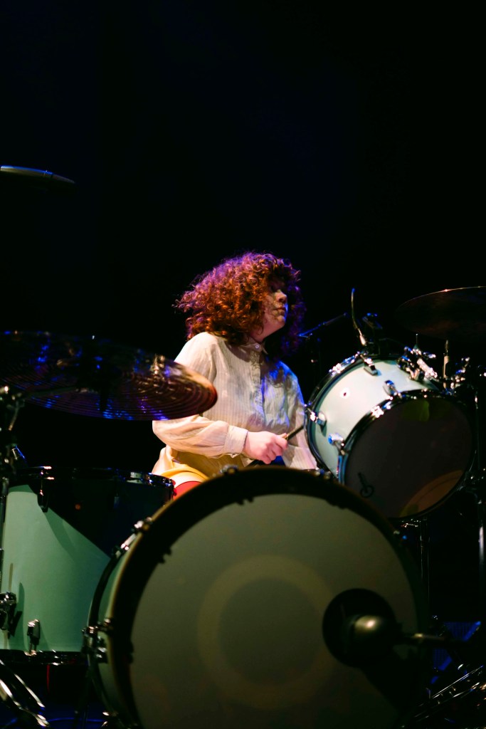 The duo began their set with electrifying energy, sure to get the crowd buzzing and ready for Silversun Pickups. Kenzie took a commanding role on the stage, interacting with and hyping up the crowd. Laila took a more nonchalant role behind her drums, still playing a crucial role in keeping that energy high. The sisters often played off each other, with Kenzie shredding guitar while facing Laila. Towards the end of their opening set, Kenzie called to the crowd, her voice sharp into the microphone, “Do you like heavy shit?” The crowd rumbled and cheered in response, and the sisters proceeded to do exactly that. The girls ended their set with as much energy as when they had started, their final chords ringing out like an exclamation point, leaving an unforgettable impression on the whole room. Girl Tones’ set provided the perfect spark, setting the stage for Silversun Pickups to take over.
