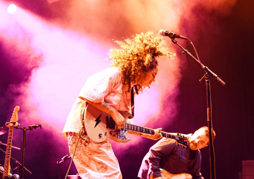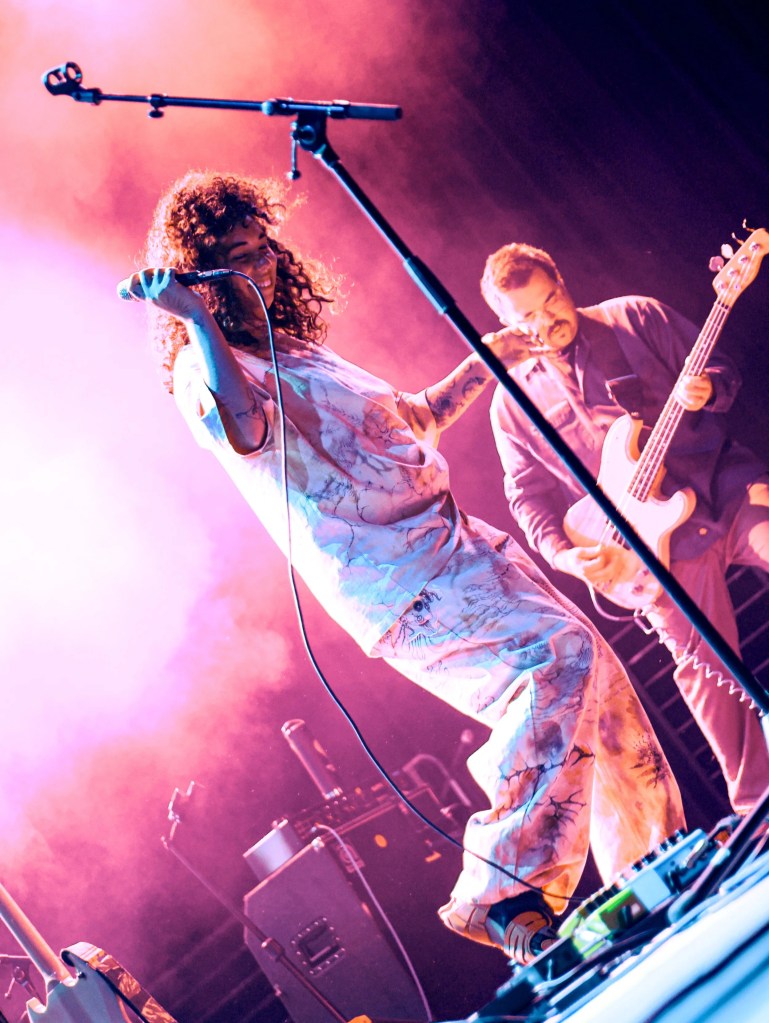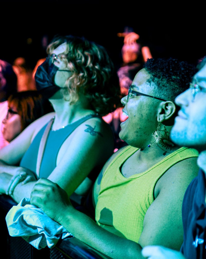 De Souza had artist and producer Mothé as the opening performance and it was the perfect fit. Not only did Mothé bring the crowd together with their experimental sounds that invite your body to move, but they made sure to let the crowd know how important and special it is to come together in times like this: creating a safe space for everyone in the room to be themselves. Mothé and their bandmate Tim Brown have a contagious amount of energy, loving every moment that they are on stage. Mothé set had the entire crowd jumping in unison, specifically during their song “BEAT, DRUGS, SEX, LOVE” from their most recent album Total Popstar.