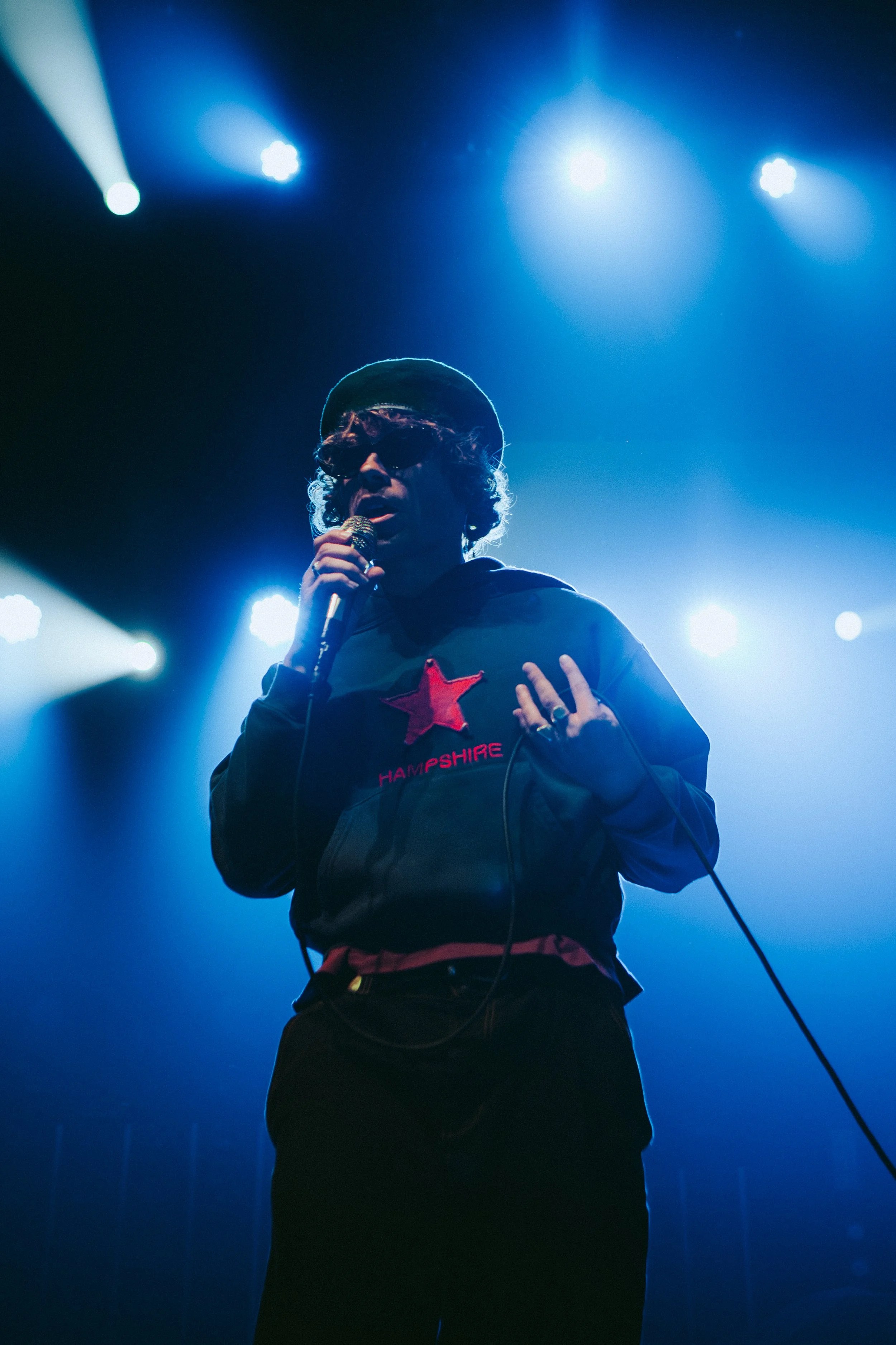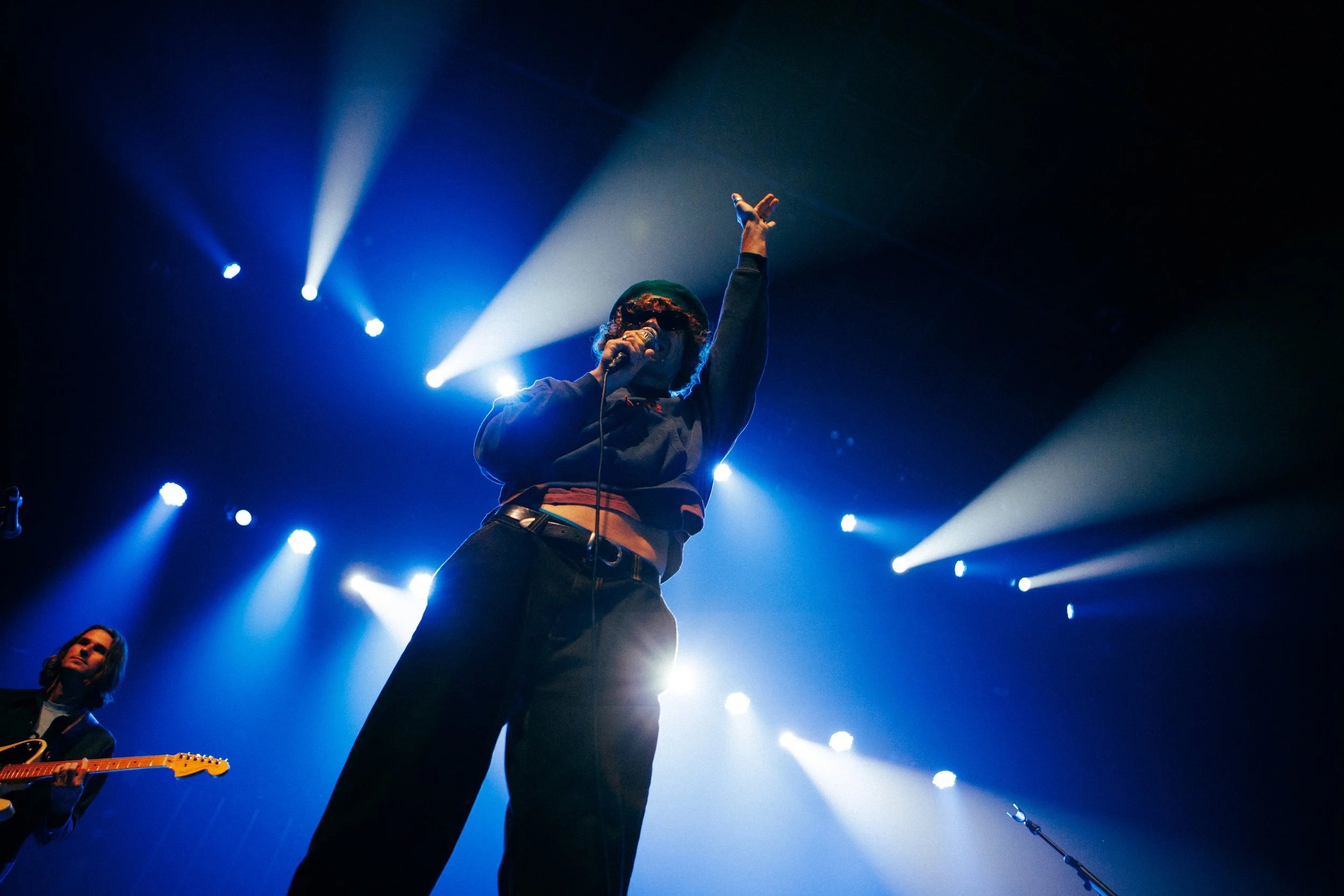 One by one, the band entered the stage out of the darkness, before the first few notes of “Daphne Blue” began playing through Spencer Stewart’s guitar. As the first beat dropped, a wave of confetti exploded onto the crowd, raining down on them as the song continued to play. Across the front row and to the very back of the venue, fans were screaming every word, recording the moments on their phones to remember that euphoric feeling.