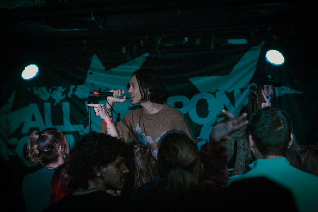 Between songs, the bands on stage banter blurred the line between fans and family as they shouted out their friends and family in the audience, celebrated Gabe Pietrafesa’s (guitarist) birthday as his girlfriend brought him out a bottle of champagne, and the bassist, Mackenzie Clarke, celebrated her mother’s birthday. At one point, they pause, and the room goes quiet as they remind us all, “You’re important, you matter, and you deserve to be here,” for a moment, giving the crowd a chance to bask in the community and love fostered by the band.