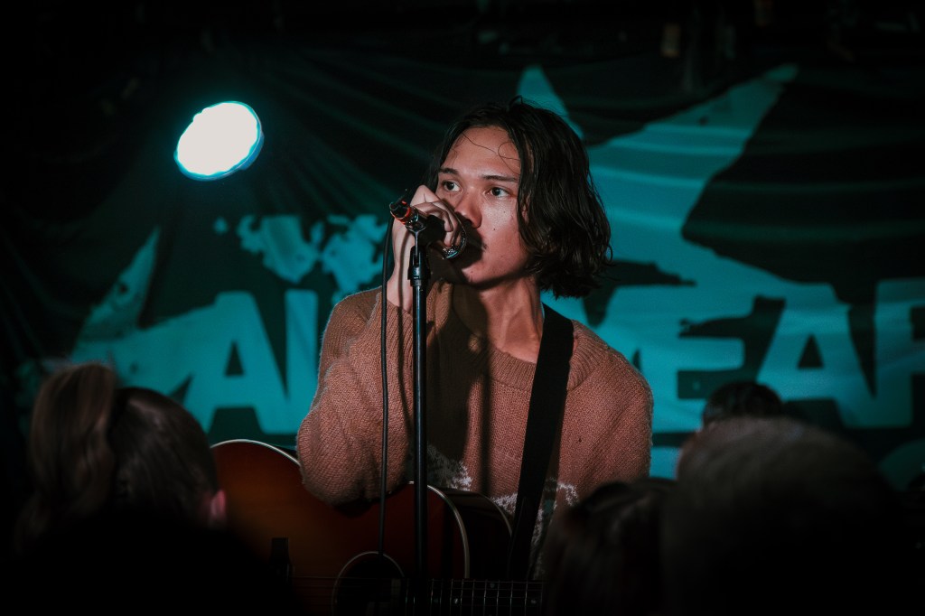 Local bands Nakedburn and Wakelee took to the stage to set the tone early. Led by frontman Matt Guarrasi, Nakedburn brought post-hardcore to Hard Luck, bringing energy that gives hope for the new generation of underground emo in Toronto. Brooklyn’s Indie-Rock band Wakelee’s set stood out for their incredible guitar work and the excitement of unexpected trombone lines cutting through their mix. Inspired by artists such as Death Cab for Cutie and A Great Big Pile of Leaves, they gave the bar a taste of the classic emo revival sound, putting the crowd in the perfect mood for the final opener. Bike Routes, with their rich, controlled vocals, delivered an acoustic-driven sound that blended Midwest emo with new-generation indie pop. These three opening acts were a perfect culmination of the sound of Young Culture, a perfect blend of indie and pop-punk with a tinge of fourth-wave emo.